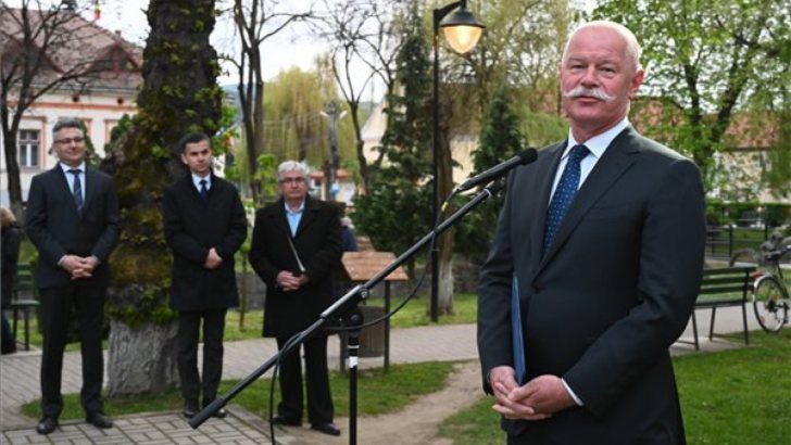 Csák János kultúráért és innovációért felelős miniszter beszédet mond az erdélyi Kovásznán, a 33. Kőrösi Csoma Sándor Napok nyitóünnepségén 2023. május 4-én. MTI/Kátai Edit