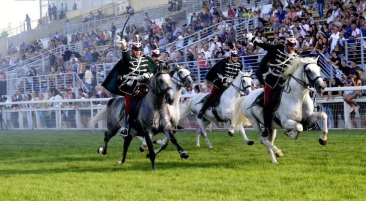 Huszárbemutató a Kincsem+ TUTI Nemzetközi Ló- és Agárverseny és Food Truck Show-n Budapesten, a Kincsem Parkban 2023. szeptember 2-án. MTI/Kovács Attila