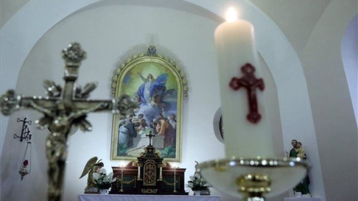 Oltár a megújult gávavencsellői Nagyboldogasszony plébániatemplomban az átadása napján, 2023. október 21-én. MTI/Vajda János