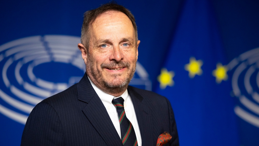 Dömötör Csaba, a Fidesz EP-képviselője sajtótájékoztatót tart Strasbourgban 2024. december 18-án. MTI/Bodnár Boglárka