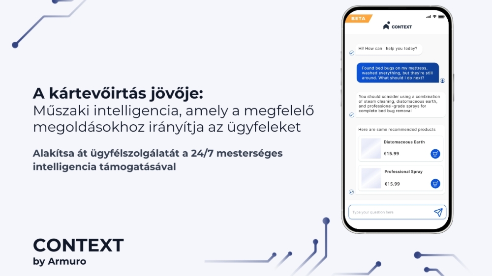 A kártevőirtás ma már nemcsak a vegyszerekről és a terepen végzett munkáról szól. Egy modern cégnek folyamatosan kapcsolatban kell állnia az ügyfeleivel, gyorsan kell reagálnia a kérdésekre, és naprakészen kell kezelnie a tudásanyagát. Az Armuro új megoldása, a Context pontosan ebben segít: mesterséges intelligencia a kártevőirtásban, amely egyszerre növeli a hatékonyságot és javítja az ügyfélélményt.