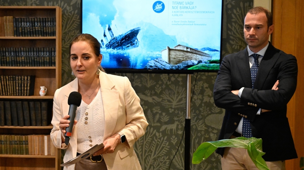 A Scruton VP belvárosi terében szerdán megrendezett eseményt Máthé Zsuzsa, a Szent István Intézet vezetője nyitotta meg, aki beszédében erőteljes képpel érzékeltette a jelenkori Európa állapotát. A Titanic tragédiáját idézve arra figyelmeztetett: a felszíni nyugalom gyakran elfedi a mélyben zajló, végzetes folyamatokat.