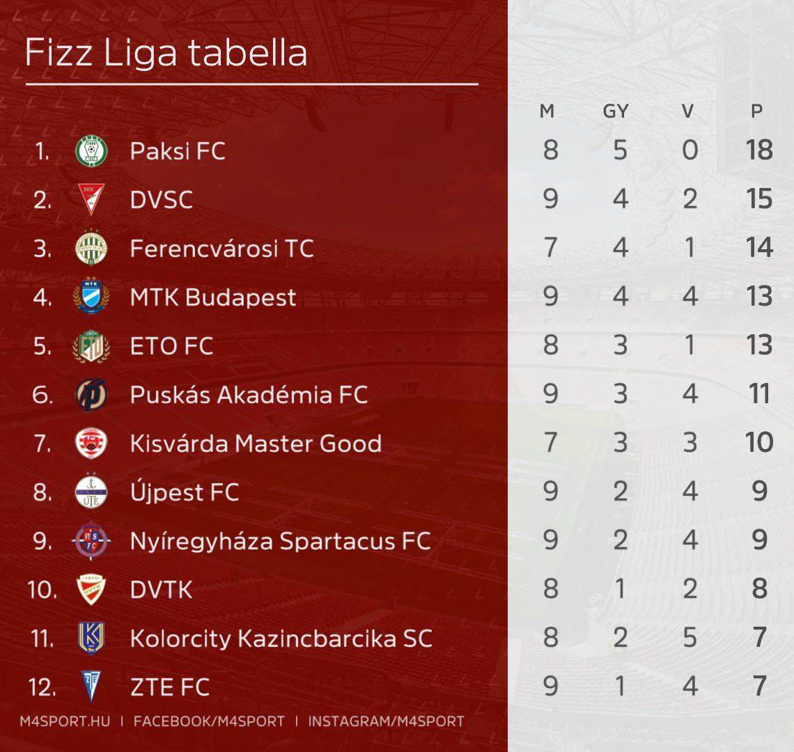 A Vasutas az ETO ellen elért döntetlennel egy pontot szerzett, és ezzel letaszította az FTC-t a másodikról a tabella harmadik helyére. A Fradinak ma meg kellene vernie a Paksot, hogy újfent a második legyen, s egy pontra megközelítse az atomváros gárdáját.