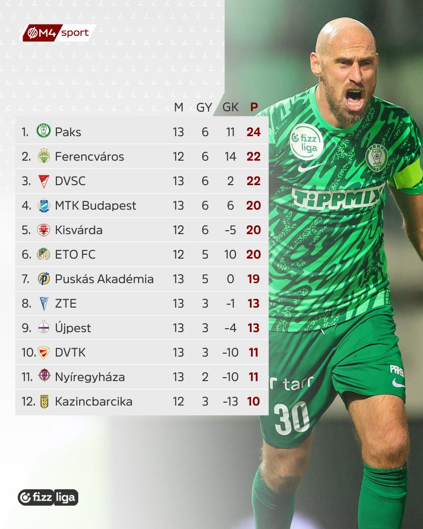 Az NB I mezőnyének tisztulása csak részleges, az élen továbbra is az a Paks áll, amely a nemzetközi kupában sorra leszerepel. Az MTK sem foglal még el dobogós helyet, a Győr pedig egyelőre a középmezőnyben.