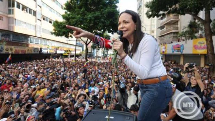 Borítókép: Caracas, 2025. január 9. Maria Corina Machado venezuelai ellenzéki vezető (k) a tüntetőkhöz beszél Caracasban 2025. január 9-én, egy nappal a harmadik mandátumát megkezdő Nicolás Maduro elnök beiktatási ünnepsége előtt. MTI/EPA-EFE/Miguel Gutiérrez