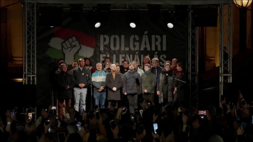 A felszólalók mögött a színpadon a Polgári Ellenállás szlogenje állt. Hadházy megspékelte azzal, hogy „polgári engedetlenségre” van szükség. Mi ellen tiltakoznak, hogy a hazugság, hamis vádaskodás ne legyen büntetendő? Eközben, szóhasználatában gyűlöletkeltéssé és félelemkeltéssé válik a hamisan vádaskodók kivizsgálása. A Fidesz pártiak pedig „áldozatai a rendszernek”- mondja Hadházy a más birtokára naponta behatoló, Hatvanpusztáról is hamisan vádaskodó. Nincs ő egyedül ebben, baloldali újságírók is naponta megteszik, hogy benzinköltséget nem kímélve Felcsútat látogatják, és szimatolnak, hogy vádaskodni és hergelni tudjanak jóhiszemű olvasókat, akik ennek hatására napról napra jobban gyűlölik a megvádoltat. Ők keltenek gyűlöletet, de ezzel vádolják a jobboldalt, ami az ő bűnük. Régen bevált szocialista taktika, vádold azzal az ellenséget, amit te követsz el.