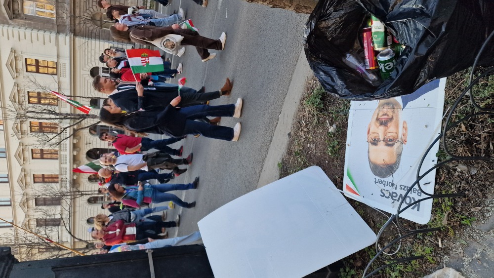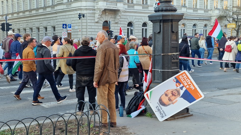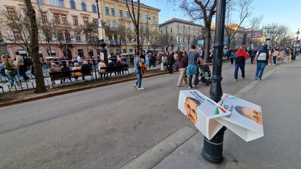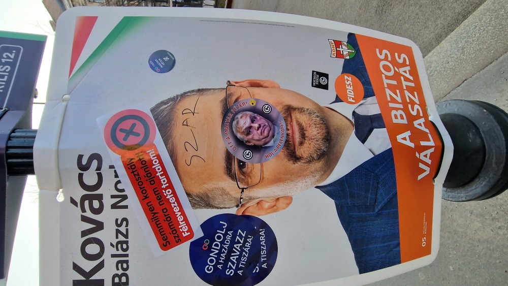 Különbség a két politikai erő lelkülete között. Míg a Békemenet résztvevői nem bántották az ellenfél pártok kampányanyagait, az önmagát szeretetpártként reklámozó Tisza támogatói bőszen rongálták a Fidesz-KDNP képviselőjelöltek plakátját a Nemzeti meneten.