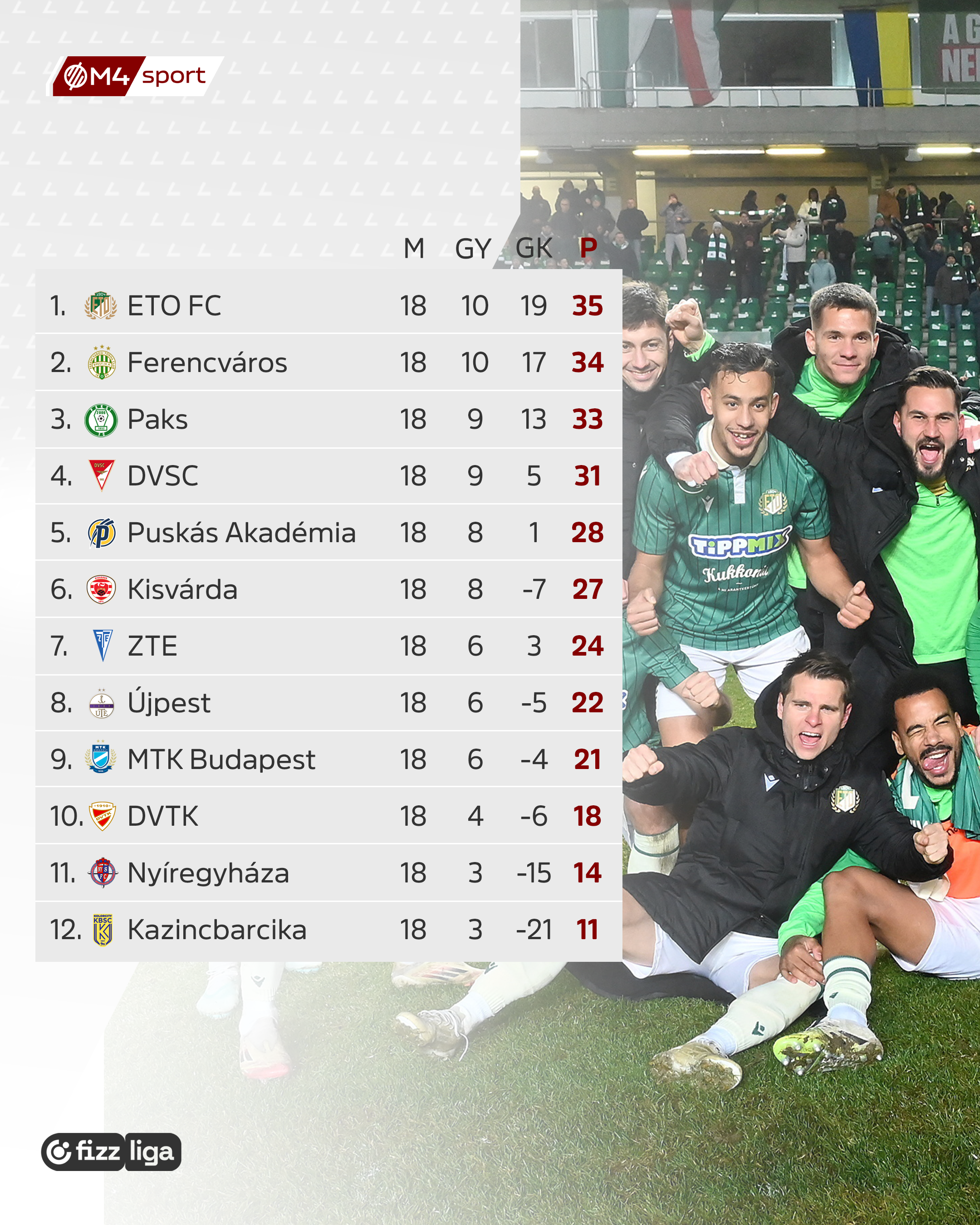 Ötvenöt méterről lőtt góllal ért véget a hazai első osztályú klubfutball őszi idénye. Nagyjából reális sorrend alakult ki a tabellán. Az első két helyen a nemzetközi mérkőzésekre alkalmas két csapat állomásozik, igaz, a várthoz képest fordított sorrendben. Az FTC helyett az ETO tanyázik az élen.
